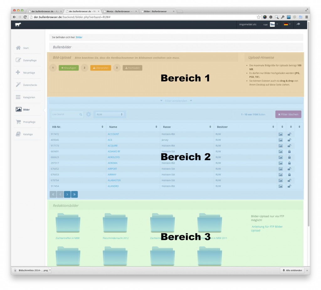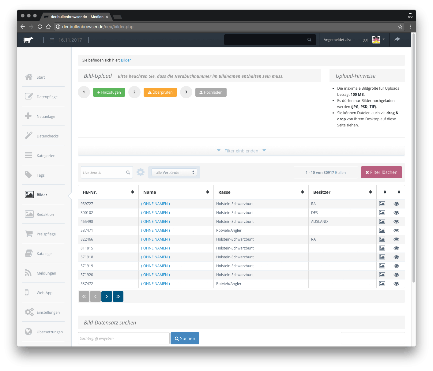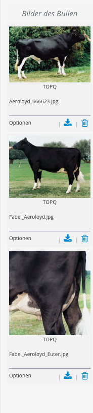 Hier werden alle bereits hochgeladenen Bilder zu einem Bullen angezeigt.