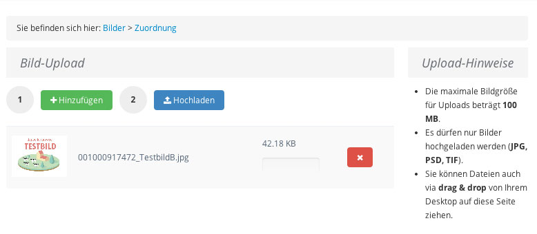 Folgende Hinweise sind beim Bildupload zu beachten: