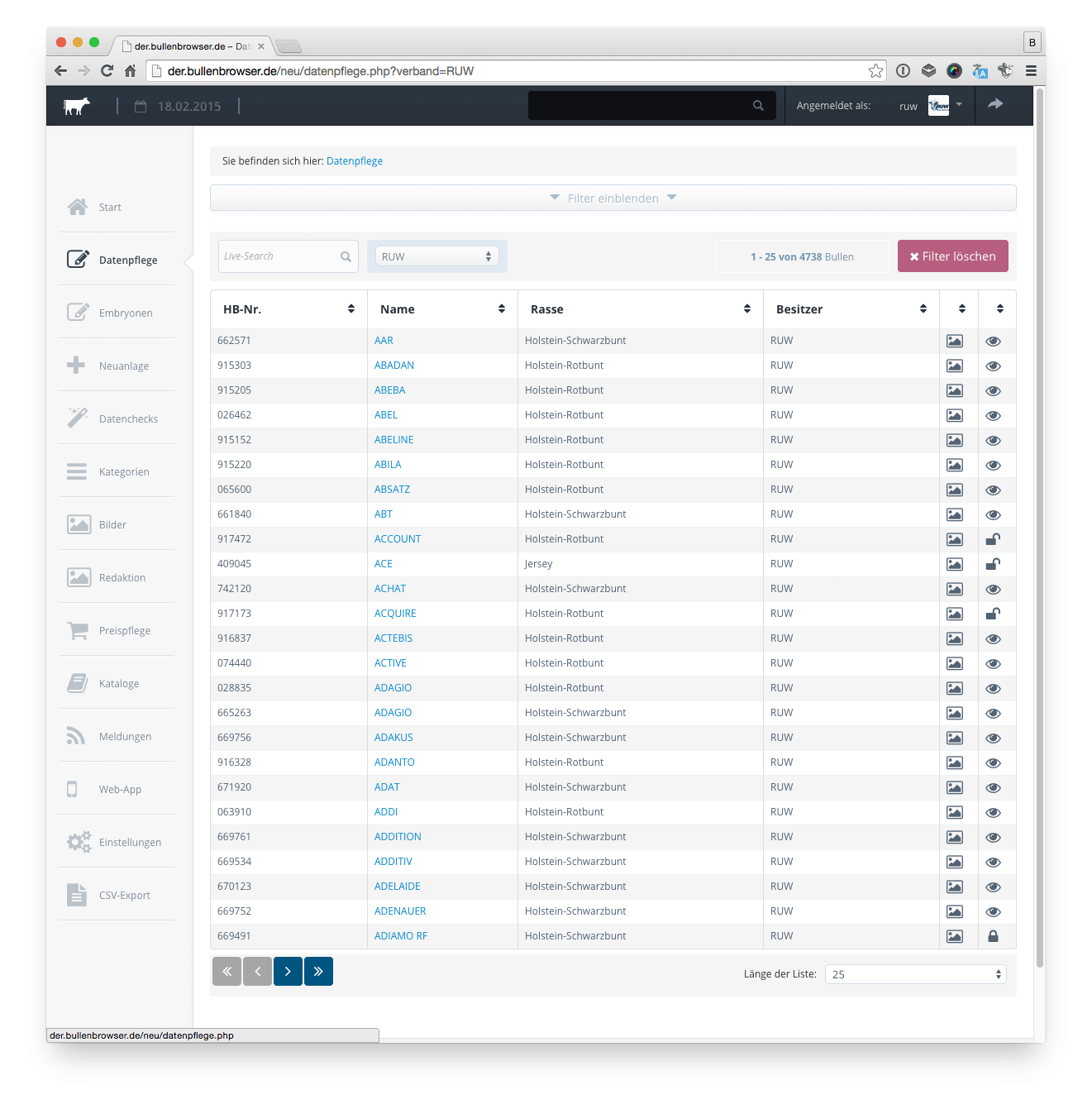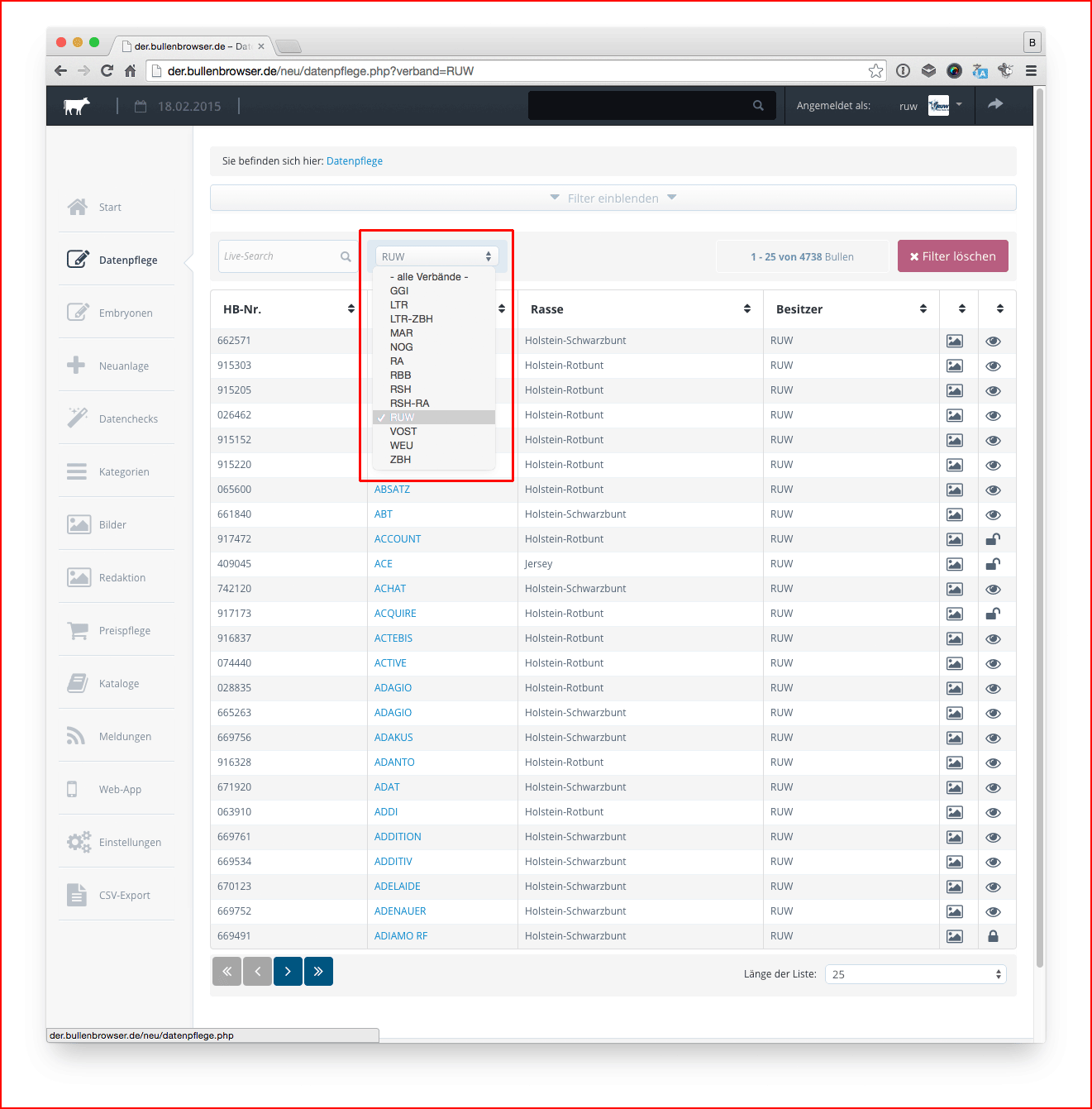 Es werden nur noch die Bullen angezeigt, dessen Besitzer mit dem von Ihnen gewählten Besitzerverband übereinstimmt. Die Suchfunktion durchsucht dann auch nur noch diese reduzierte Liste.