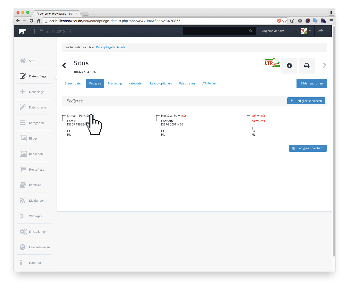 Für eine schnellere Erfassung und vereinfachte Bearbeitung wurde das Pedigree jetzt umgestaltet.