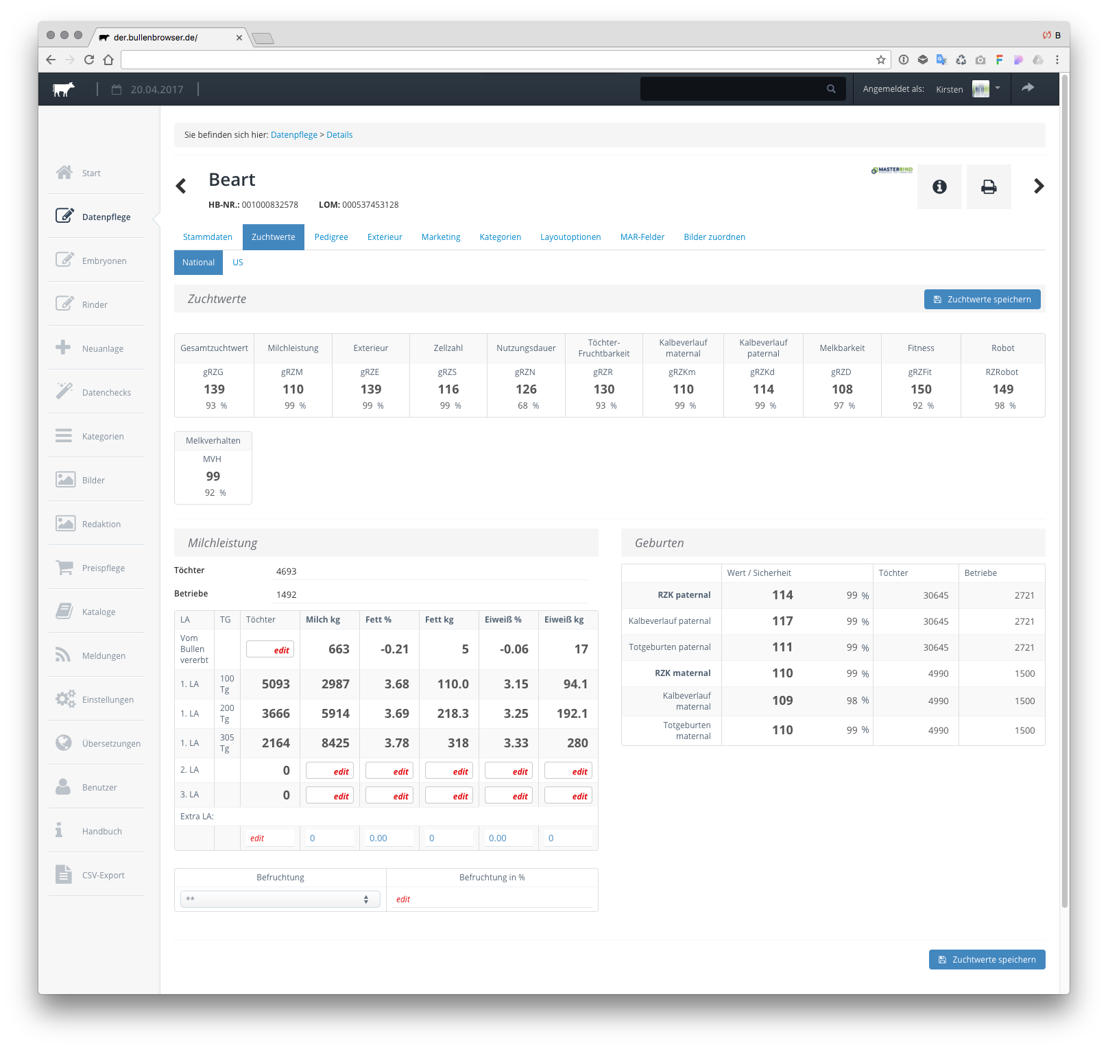 In der Liste werden zunächst alle Bullen angezeigt die Sie besitzen.
