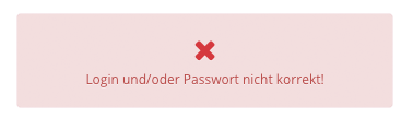 Wenn falsche Login-Daten (Benutzername oder Kennwort) eingegeben werden, erscheint folgender Hinweis: